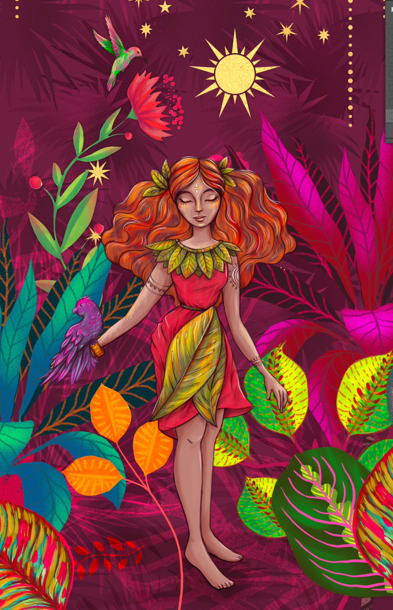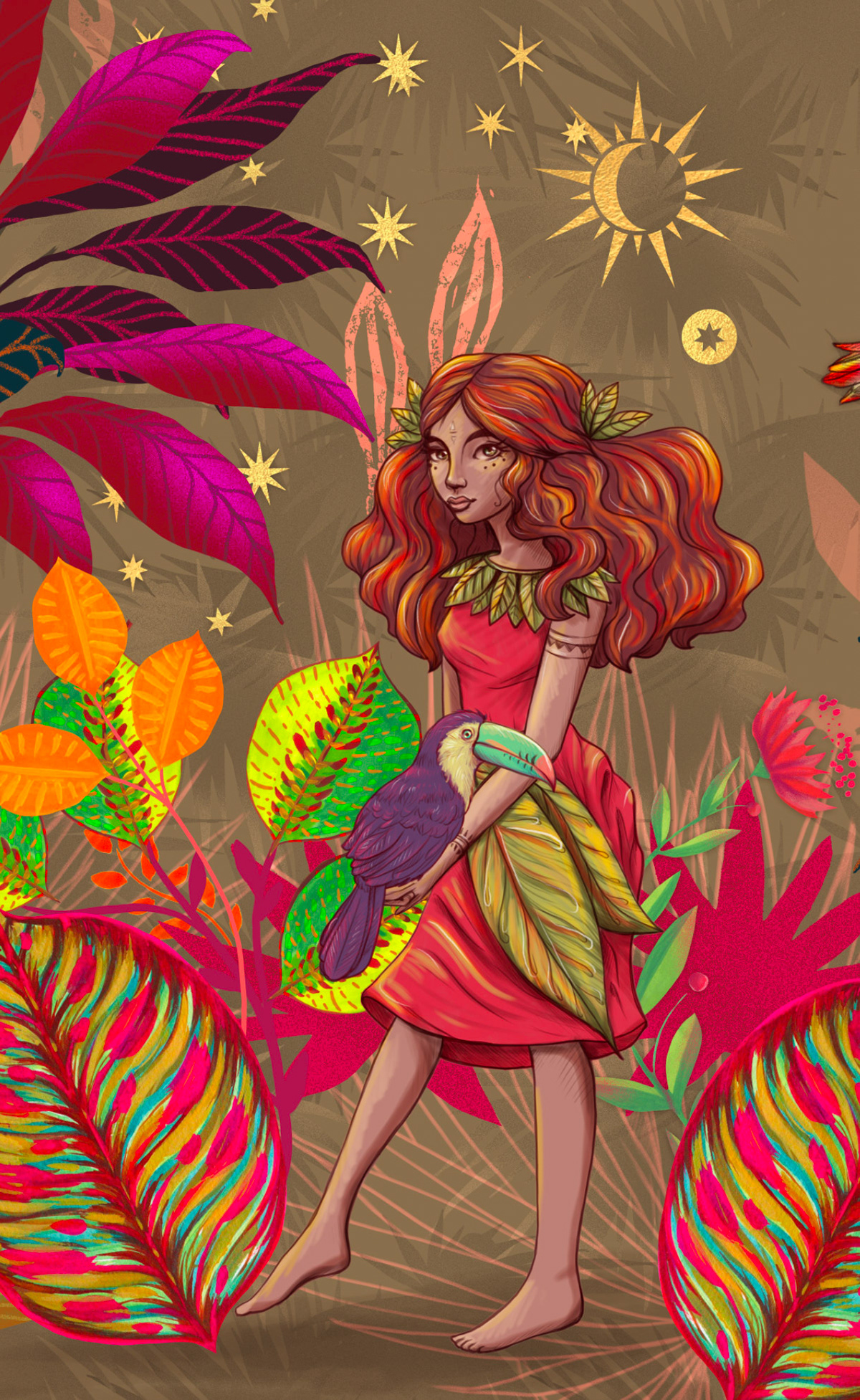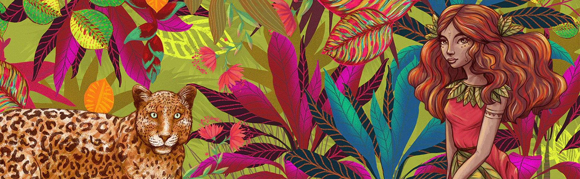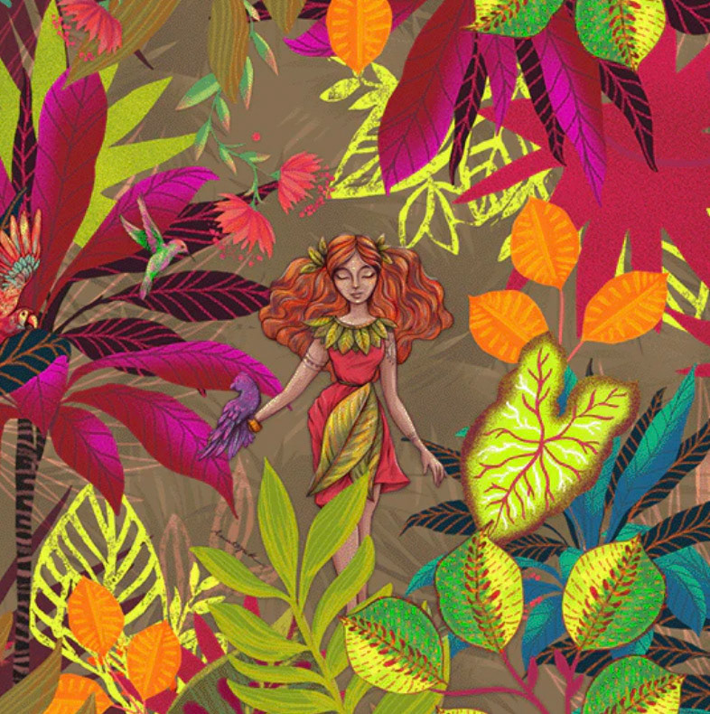 Amazone est un motif que j'ai adoré illustrer, et qui m'a fait explorer la jungle luxuriante et magique de la déesse GAIA (comme je me l'imagine ;-))